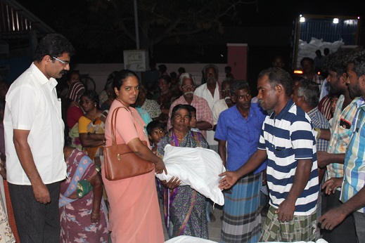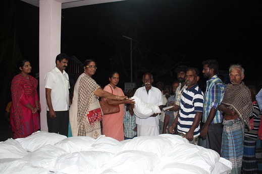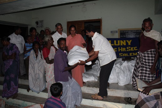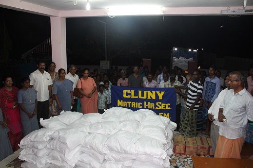 On Dec 9th 2018 with the guidance of our Principal Sr. Roselyn and support of Rev. Fr. Jerome, Social Worker, Pallotine Congregation & Mr. Munna, IRCS, Salem District Branch Chairman, Staff members of Cluny [Mrs. Malarvizhi, Mr.John, Mr. George Mr. Mahendran] went to Thirupundi and near by villages Sembodai, Augustianpalli, Kadinelvayal.. With the help of the Parish Priest Rev. Fr. Kennedy we reached to the victims of Gaja and distributed the relief materials. We interacted with them and prayed for them. They were very happy to receive the little help that was rendered.