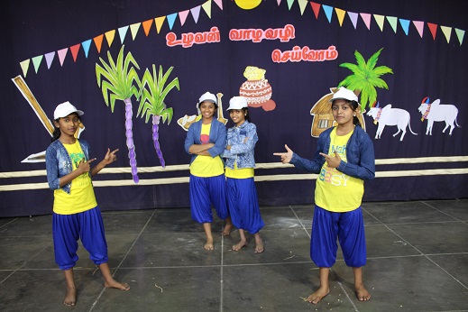 The festival of Harvest - Pongal was celebrated in a colourful and grand manner on 11.01.2019. The hard work and joy of farmers were portrayed in the form of dance, drama and Speech.