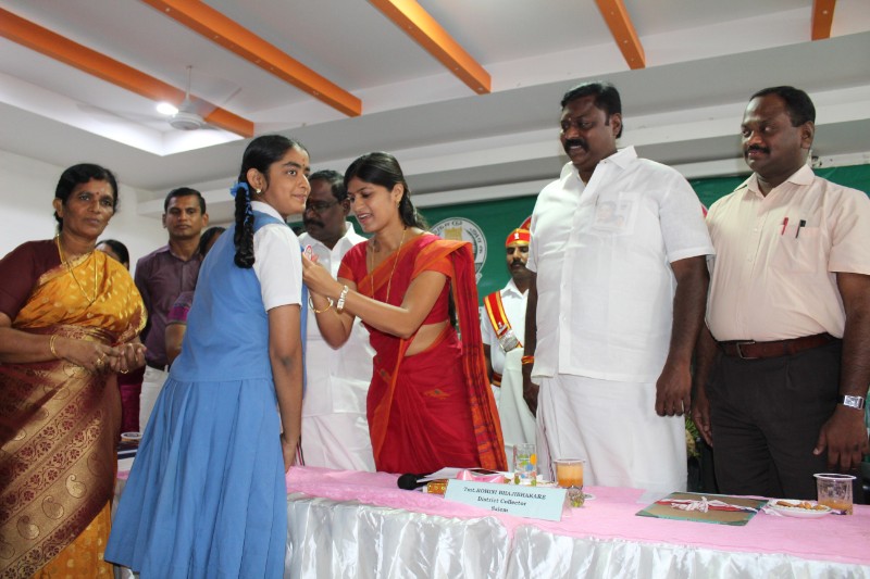 Our Students Sainee C of Class VIII A & Megha V of Class VIII B participated in the Salem Thangamagal Award Competition and received prizes from our District Collector Mrs. Rohini Bhajibhakare,I.A.S.