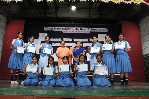 Daksha B of Std VIII has won First prize in the Tamil Oratorical Competition , Dharshini R E of Std XI has won First prize in the English Oratorical Competition.