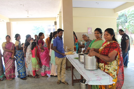 65 Aids patients came from villages near Omalur. They were given Tea, Snacks and Lunch. They were also given a bag of nutritious Grains.