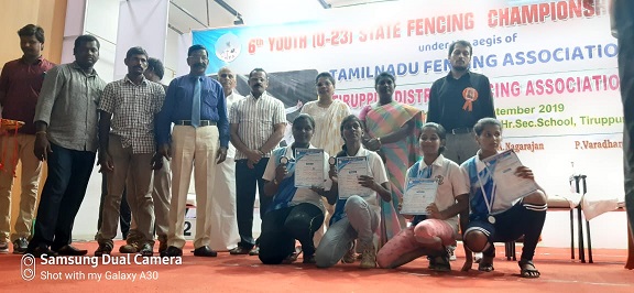 Tamil Nadu Fencing Association organized 6th Youth State Fencing Championship at Tiruppur on 14th and 15th September 2019.The following girls won the medals. SABRE (TEAM)