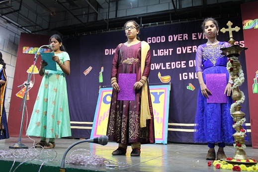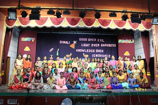Diwali was celebrated in our school on 25.10.2019 by class VIII. It was a colourful and a grand celebration. A oath was by all the students to keep the environment clean by minimizing the bursting of crackers and follow the time limit.