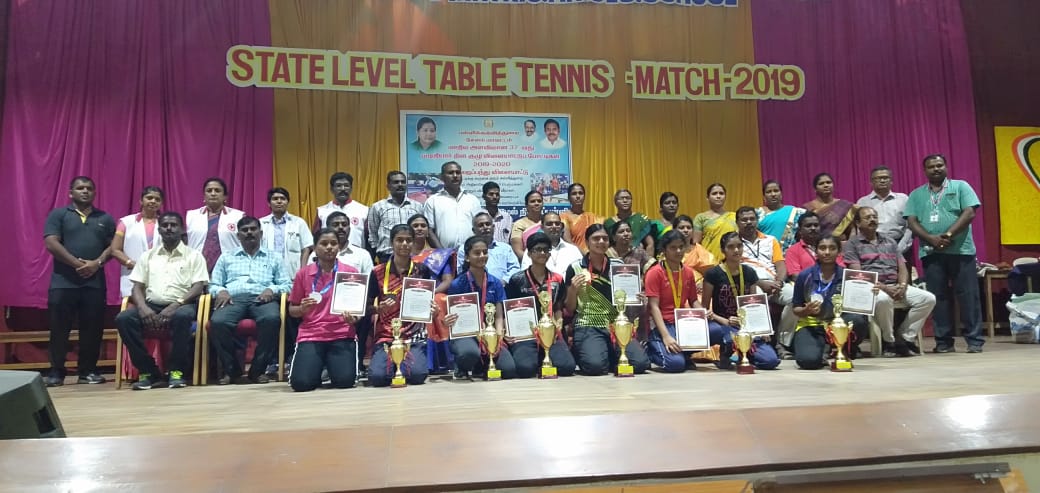 State Level Table Tennis Tournament was organized by the Education Department on 26.11.2019 & 27.11.2019 at Holy Cross MHSS, Salem. Our student Sheona C of Class X participated in Table Tennis Singles and won 3rd Prize with bronze Medal. She also received Rs. 400/- as cash award.