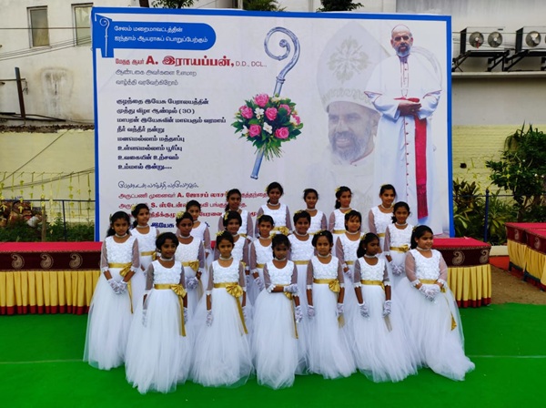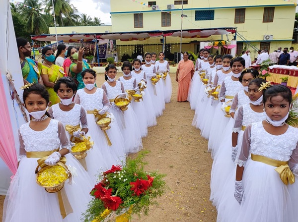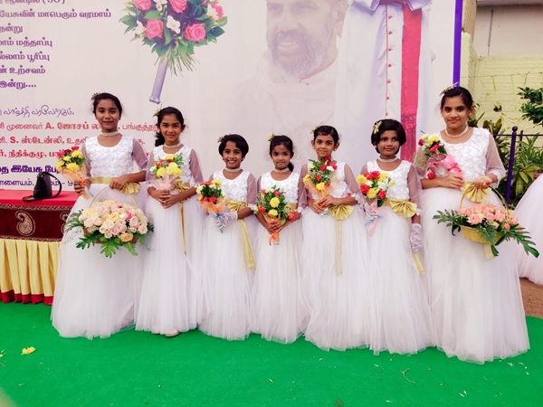 Our students as flower girls at the Episcopical Consecration of the newly appointed Bishop of Salem, Most Rev. Dr. Arulselvam Rayappan on 04.08.2021 at Infant Jesus Cathedral, Salem.