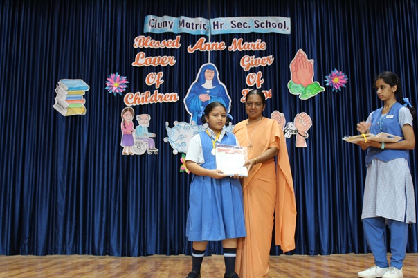 Soundharya Lakshmi S of class IV has got the 4th rank and Shyamalaa S the 5th rank. They have been awardeda medal, certificate and books as prizes.