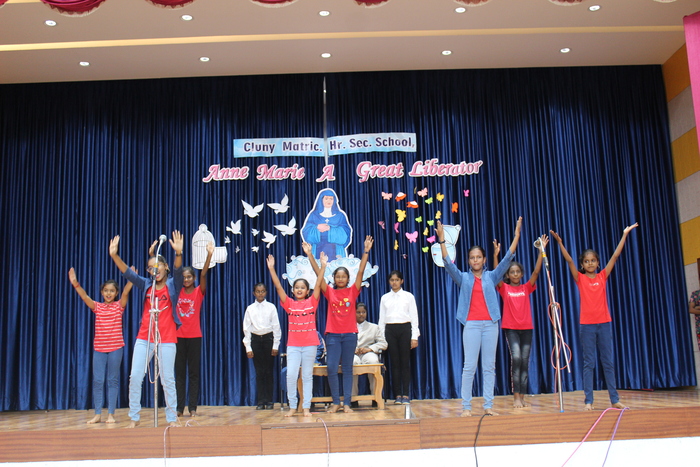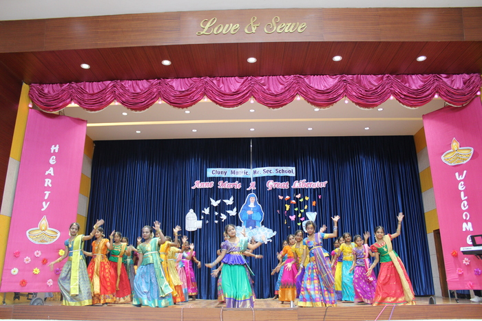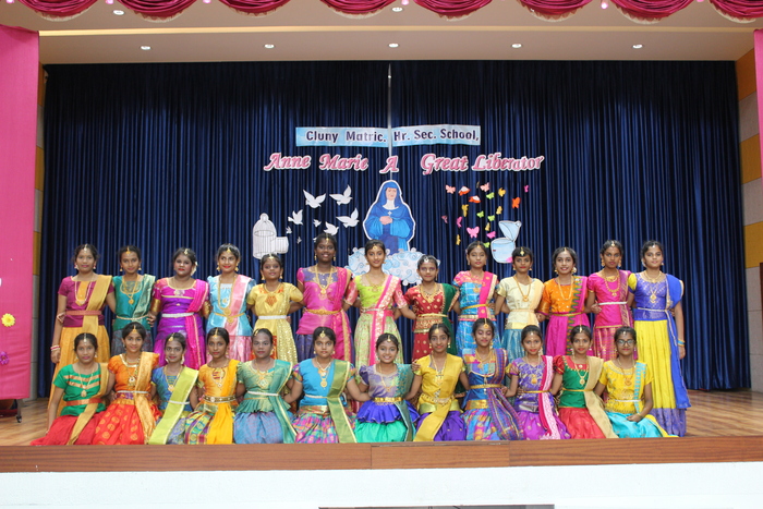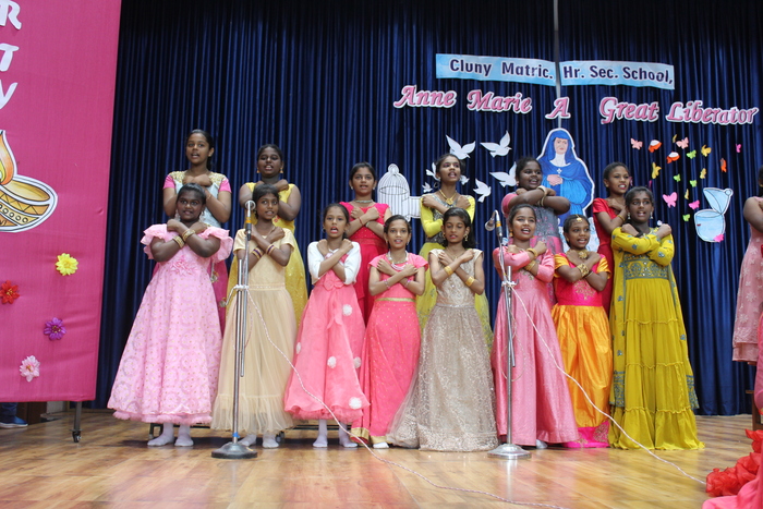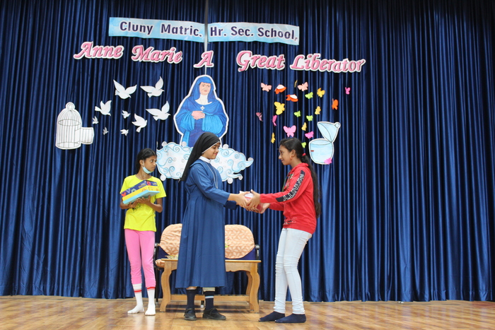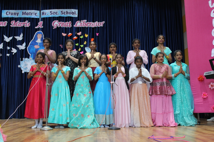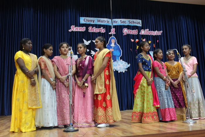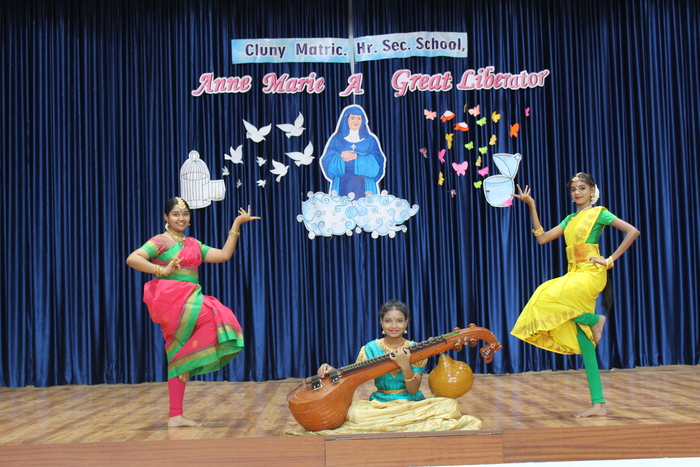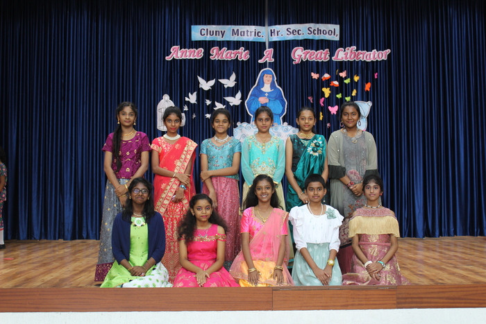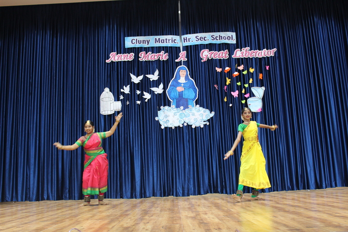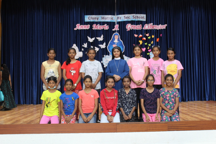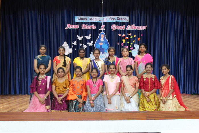 The celebrations continue with prayers to Bl. Mother Anne Marie Javouhey and Std VII started the day(13.07.2022) with a beautiful prayer service and a prayer song. The salangaai beads on the feet of the graceful bharathanatyam dancers moved in unison and extolled every step that they took in tune with the song steeped in abhinaya . As Saindhavi K S deftly moved her fingers on the veena strings to present Thillana a rhythmic musical piece, Gayathri of Std IX and Madhuridha N M of Std X danced to the soulful music in synchrony keeping pace to the tempo and timing. Truly, a classic piece of jugalbandi!!