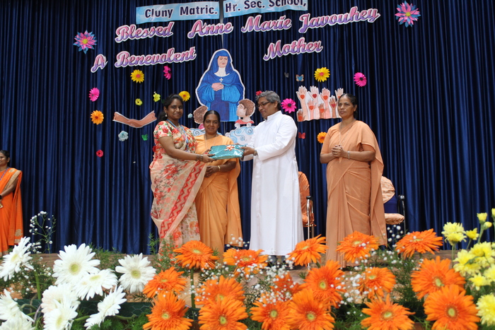 Cluny added another feather to her cap as an entire series of Computer text books compiled and illustrated by the Faculty of Computer Science for Classes I to IX was released by Rev. Fr. Michaelraj Selvan. The faculty members Mrs. J. W. Hemalatha, Mrs. Poulina B, Mrs. Mythili S, Ms. Susan Agnes J and Ms Ariffa Banu S also received gifts from Principal Rev. Sr. Roselyn in appreciation of their hard work and dedication.