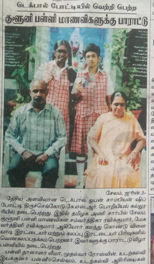 Tamil Nadu Teq Ball Association organised Teq Ball Open National Level Championship on 29.05.2022 at KSR Engineering College, Trichengode. Two Students Samvarthika R of class XII C & Megavarthini R R of Class X won Bronze Medal in doubles and mixed doubles.