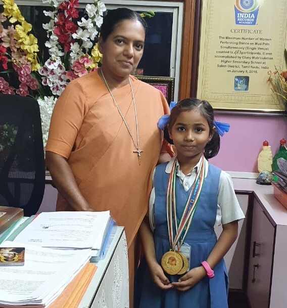 V. Ghousiya of Std VIII skated for a distance of 1 Km and won Two Gold medals in Road Race and One Silver Medal in Ring Race. She has been selected to participate in the State level competitions to be held in Chennai on 10.11. 2022.
