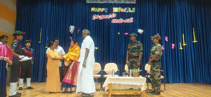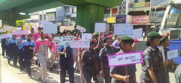 Dengue Awareness Rally by NCC Cadets was inaugurated by Worshipful Mayor of Salem District, Thiru. M. A. Ramachandran on 27.10.2022 at 9 a.m. The event was inaugurated with a short welcome address by the cadets followed by honouring of the Chief Guest with a ponnadai and shawl by Sr Roselyn. The Mayor addressed the gathering and initiated awareness towards protecting citizen from Dengue. The Guest of Honor Thirumathi. G. K. M. Vasantha Mayilvel, Councillor of the 16th Ward, Salemwas also honoured. Sr. Roselyn thanked the Mayor, Councillor, Student Cadets and NCC teachers for their participation in the event.