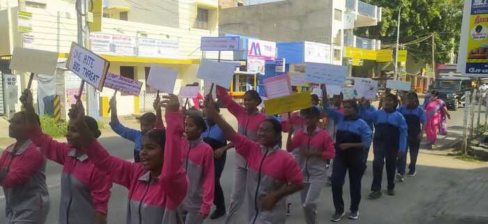 After the inauguration, the rally was flagged off by Sr Roselyn and the Cadets walked with placards and shouted out slogans as they reached Little Flower Hr. Sec. School, Salem to finish the rally. This initiative was a great success to create awareness in the society.