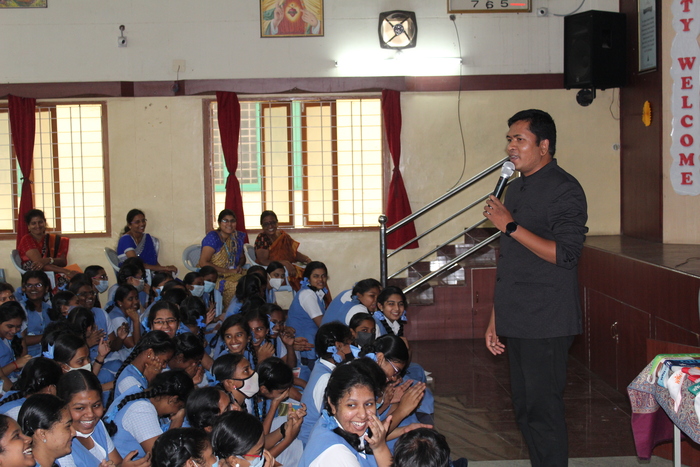The secret of getting ahead is getting started and so we did. A big crowd of 1330 students and 121 teachers attended the motivational session conducted by International Renowned Speaker Dr. I. Jegan, CEO, Win your Weakness Motivation Academy from 9.00 a.m. to 4.00 p.m. on 29.10.2022.
