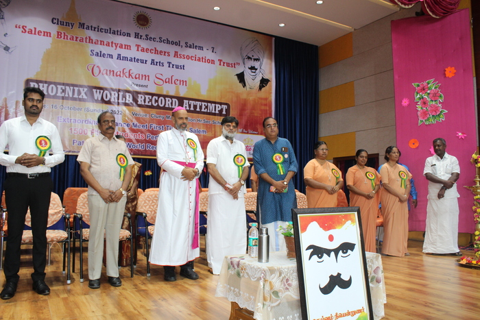 Salem Bharathanatyam Teachers Association Trust conducted the Phoenix World Record Attempt in the Bl. Anne Marie Javouhey Auditorium, Cluny Campus at 10.00 a.m. on 16.10.2022.