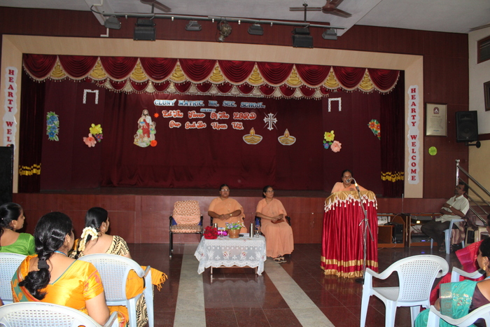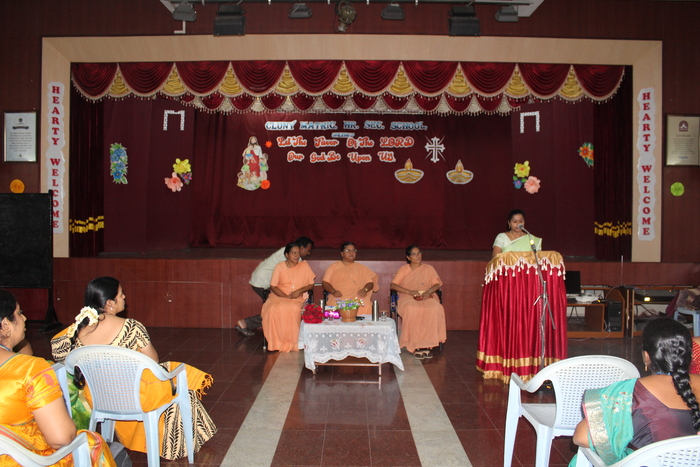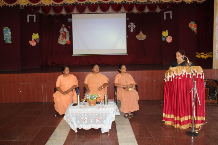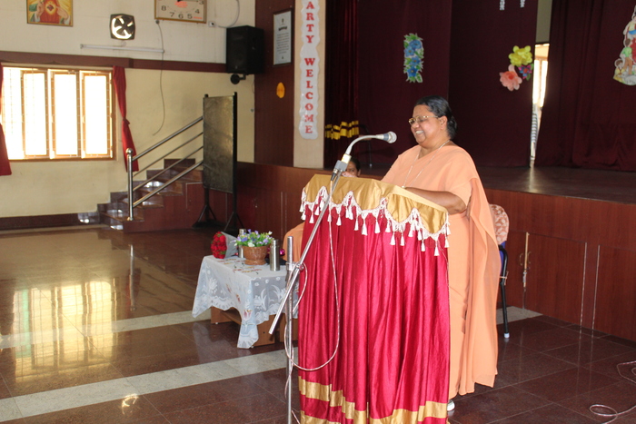 Rev. Sr. Norah addressed the teachers and the meeting started off on a humorous note. Sister thanked the teachers for their contribution towards the growth and education of children. Sister then spoke extensively on the thoughts of Bl. Anne Marie Javouhey which the mother has conveyed through her letters around 1136 of them. The main thrust was to bring up children well and love them. Kindle in them the love for God and help them to lead a full life.