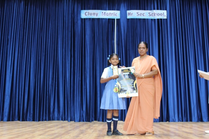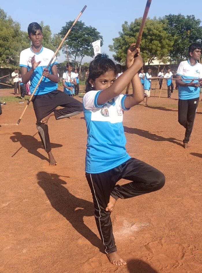 G S Sowbarnica of Std V set a World Record and received a certificate for rotating the Silambam with a single stick by standing on one leg for one hour. This was organised by Ranga Academy of Tamil Martial Arts on 04.09.2022.