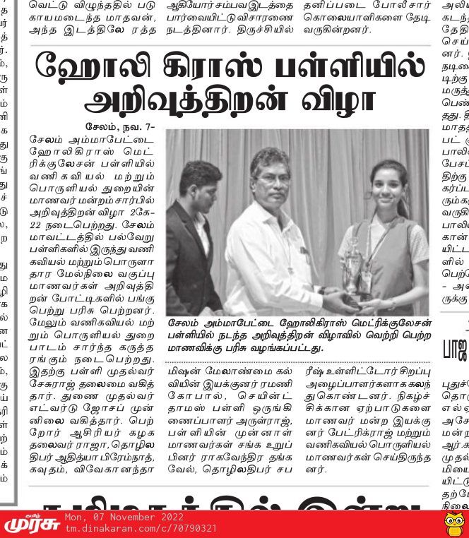 Holy Cross Ecco Club organized The Knowledge Fest 2K' 22 an Inter School Knowledge war (Exclusively for Commerce Students) on 05.11.2022 and 6 students from the Commerce Stream participated and won the following prizes.