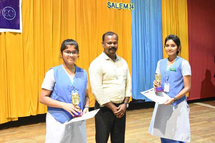 Hindhuja T and Mahashree A of class XII secured First Prize.