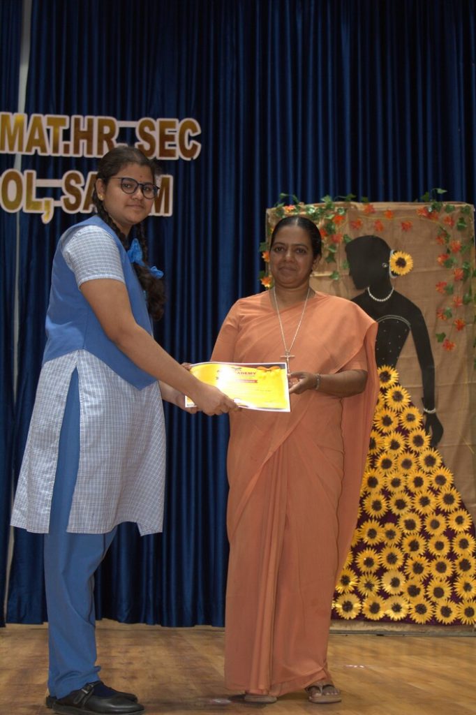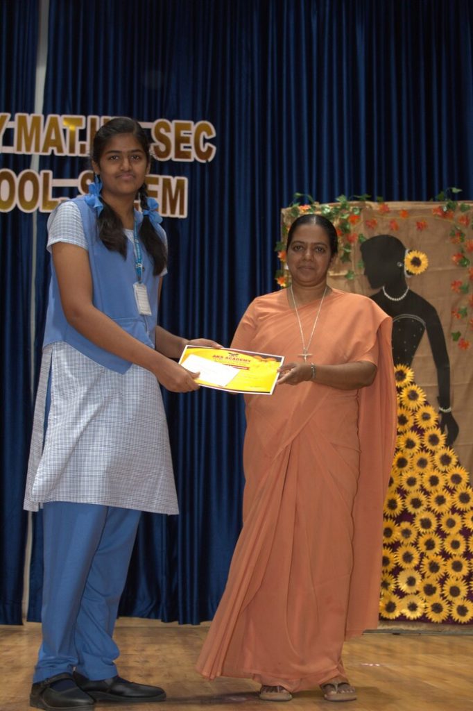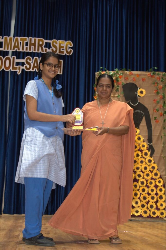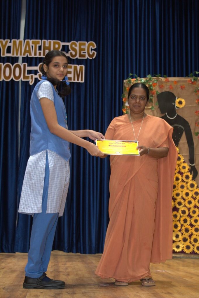 3. Mina Thasneem S of class XI E ranked 3rd and a cash award of Rs. 2000/-