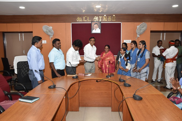 To appreciate the school, teachers and students for their committed and active participation during the Republic Day cultural programme celebration District Collector Mr. S. Karmegam invited a few students, guides teacher and Principal Sr. Roselyn to his esteemed office on 06.02.2023. Mr Karmegam distributed the certificates and shield to the children. He also urged schools to come up with new ideas for the next republic day celebrations that will initiate new healthy practices in the society.
