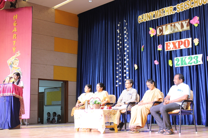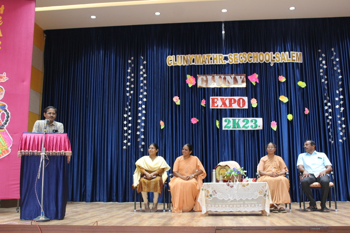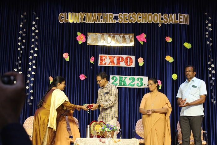 Cluny Expo 2023 was inaugurated by Dr. S. Nagarajan, Assistant Director of Agriculture, Kadayampatti, Salem District today 10.03.2023 at 9.30 a.m. A smart welcome followed by felicitation and a short congratulatory speech by the Chief Guest kick started the expo that had 11 stalls with numerous displays and working models. Students diligently explained each topic and answered questions that were put up by the audience. Parents were also invited and they came in large numbers to enthuse their children to perform well.