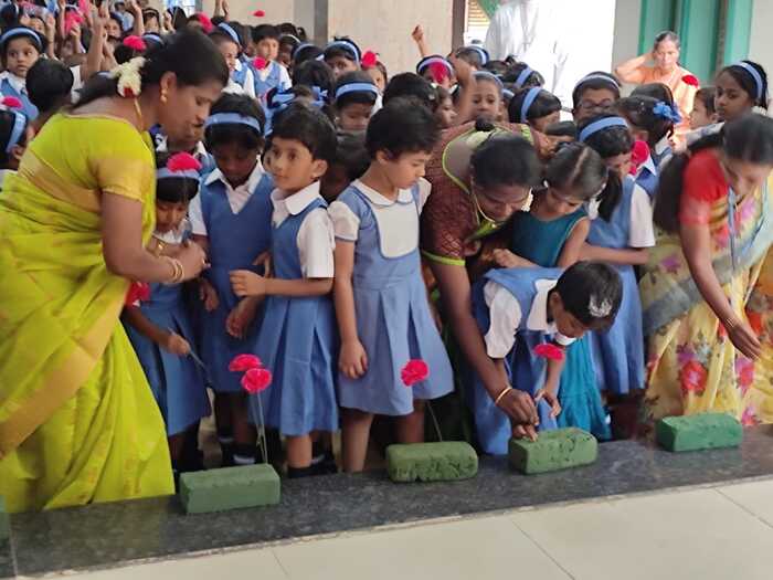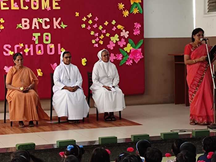 The School reopened on 14.06.2023 for the students of UKG to Std V for the academic year 2023 – 2024. Primary teachers gave a warm welcome to the students with a dance and a skit.