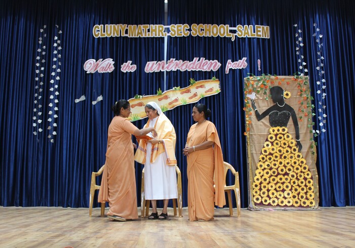 Rev. Sr. Annette former teacher and Correspondent of Cluny visited the campus today(10.02.2023). Sister was welcomed by the students and teachers during assembly as Sister is celebrating her Golden Jubilee this year.