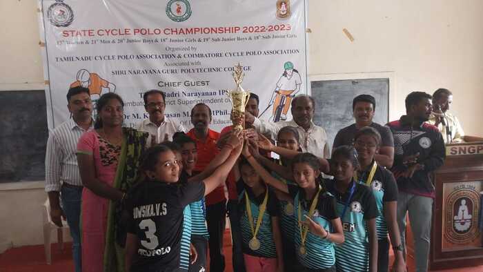 Tamil Nadu Cycle Polo Association & Coimbatore Cycle Polo Association conducted State Level Cycle Polo Championship 2022-2023 for Sub-juniors, Juniors, Seniors category. This was conducted in Shri Narayana Guru Polytechnic College, Madukkarai,Coimbatore on 28.01.2023 & 29.01.2023.