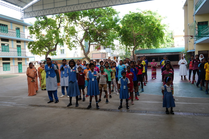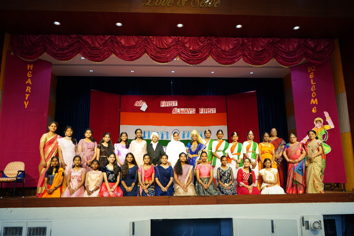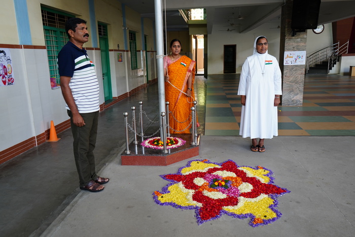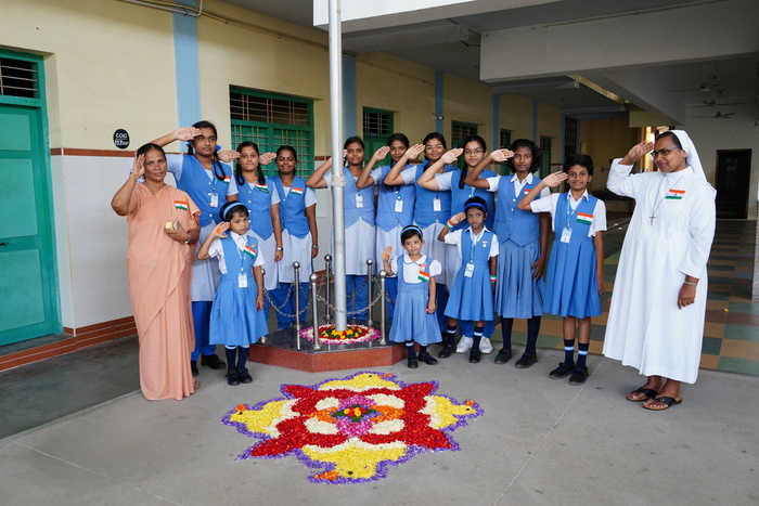 On 15.08.2023, Independence day was celebrated with hoisting of the flag by our Principal Rev. Sr. Reena. Our Correspondent Rev. Sr. Leema, teachers, student guides, athletes and players of different sports were also present for the flag hoisting occasion. National Anthem was Sung and Sr. Reena addressed the gathering. Sweets were distributed to the children on this occasion.Our NCC students gave a pride on the occasion of 76th Independence day. The students of Std VII & VIII gave a wonderful programme depicting the Tamil Folklore at Gandhi Stadium.
