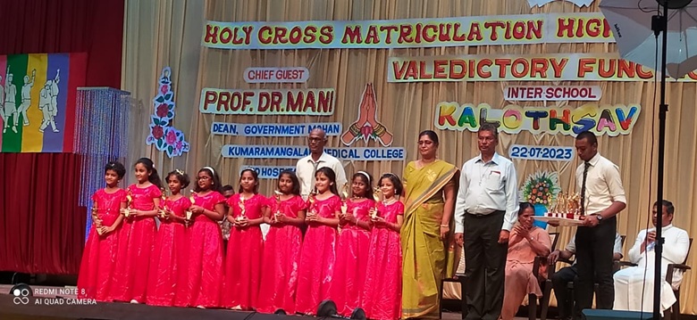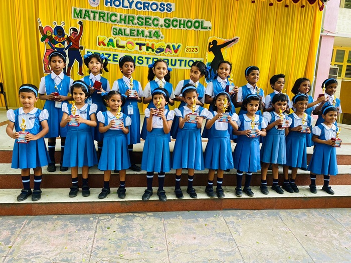 Kalothsav Inter school competition was organized by Holy Cross Matric. Hr. Sec. School on 20.07.2023 & 22.07.2023 and our school was placed First. Congratulation Girls !!!!.
