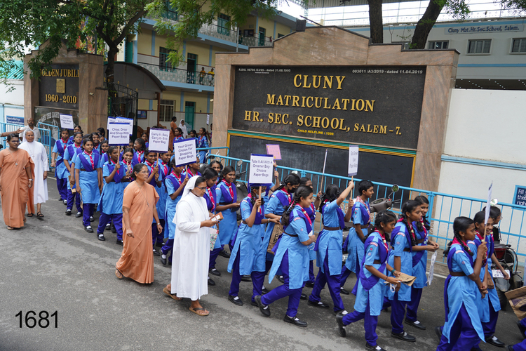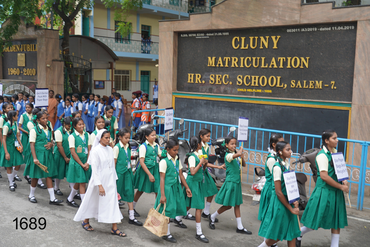 On July 12, World Paper Bag Day is celebrated annually to promote the significance of utilizing paper bags instead of plastic. To Commemorate this a rally was organized on 11.07.2023 and it was inaugurated by our Correspondent Rev. Sr. Leema. Guides, NGC, JRC students and students of Class IX had joined the rally. Principal. Rev. Sr. Reena, Sisters and Teachers were also present. “Stop bagging the planet – say NO to plastic bags……." was the slogan used by the girls during the rally.