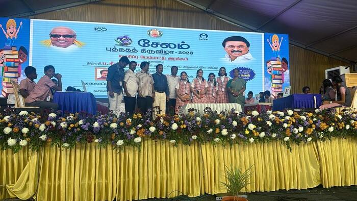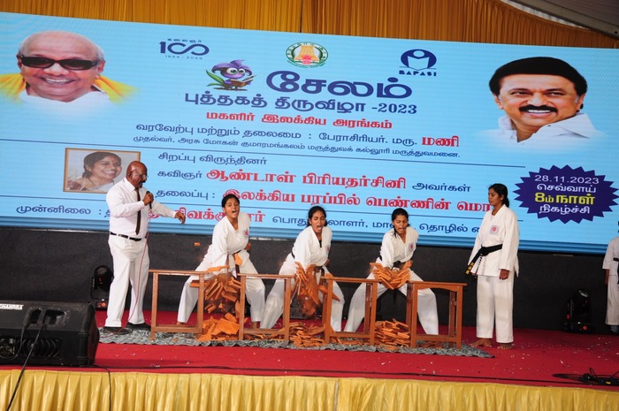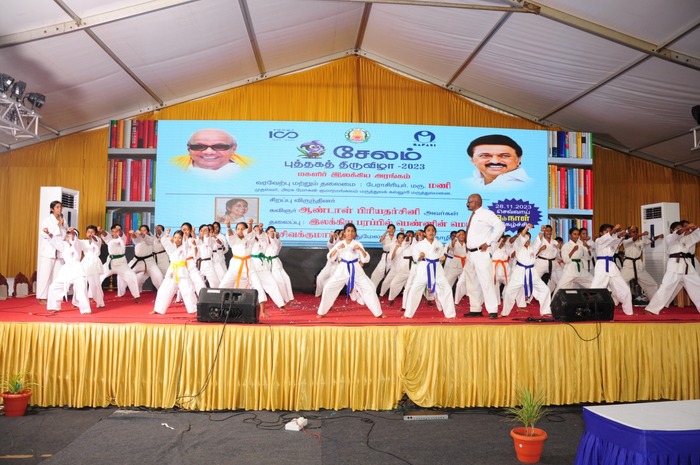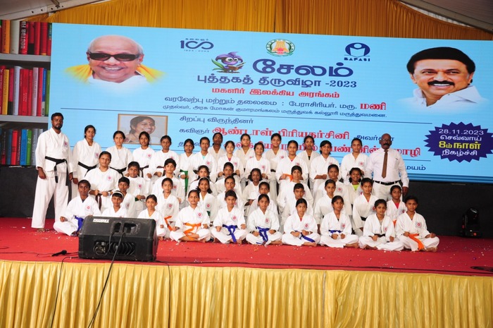 Book fair Celebration was organized by the Education Department under the guidance of District Collector near New Bus stand, Salem from 21.11.2023 to 03.12.2023 to motivate the reading habit among children. About 200 Stalls & more than 2 lakhs books were kept in the book fair. On 24.11.2023, 500 students from class VII and VIII had an opportunity to visit the book fare and bought many books. 4 Girls from our school attended the Quiz Competition and received 1st Prize. On 28.11.2023 NCC cadets performed a dance programme on the Theme “Child Protection” and 47 Karate students from our school gave a Karate demo in the cultural programme.
