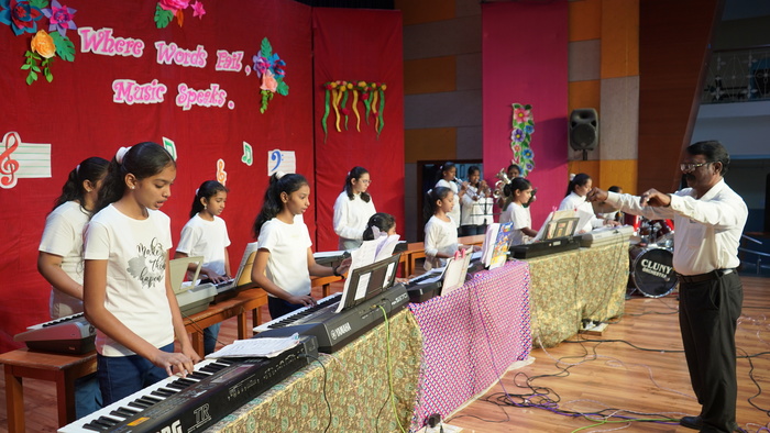 Every Year November 22nd is celebrated as International Musician's Day. It is also celebrated as the Feast Day of St. Cecilia, who was anointed as a patroness of Music by Pope Gregory XIII in 1594. The Programme started with a prayer service. We had a Quiz on Music, Speech on St. Cecilia, Instrumental Symphony No. 9 and a Song dedicated to St. Cecelia by the students of class III to XII. Students from various clubs like band, instrument and singing gave a wonderful musical entertainment.