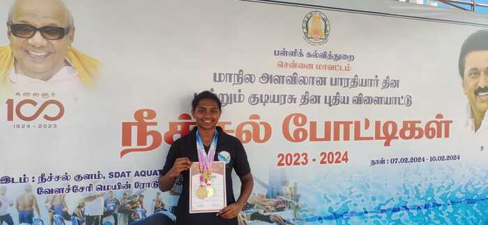 RDG/BDG State Level Swimming Sports and Games was organized by the Education Department at SDAT Aquatic Complex, Chennai from 07.02.2024 to 08.02.2024. The following were the prize winners.
