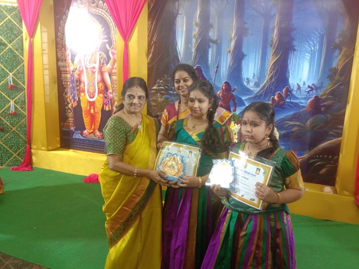 Salem Sangeetha Vithwath Sabha organized Carnatic Vocal Concert at Saelathil Thiruvaiyaru on 11.05.2024. Soundharya Lakshmi S of class VI and Sudarshana S of class IV were awarded with a certificate and a memento.