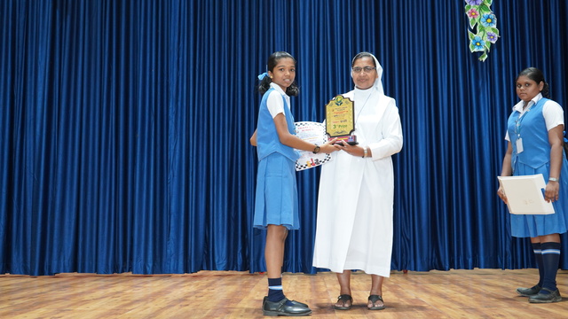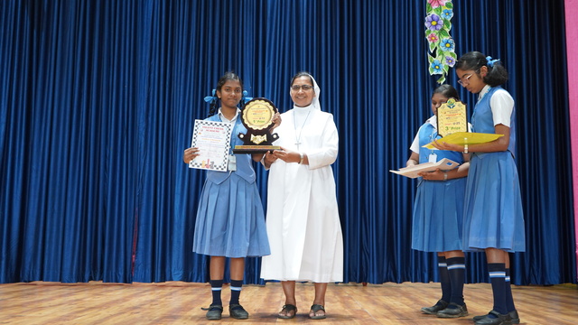 1. Roshini S V of Class VIII participated in the U13 category and scored 5/6 and bagged 1st Prize.