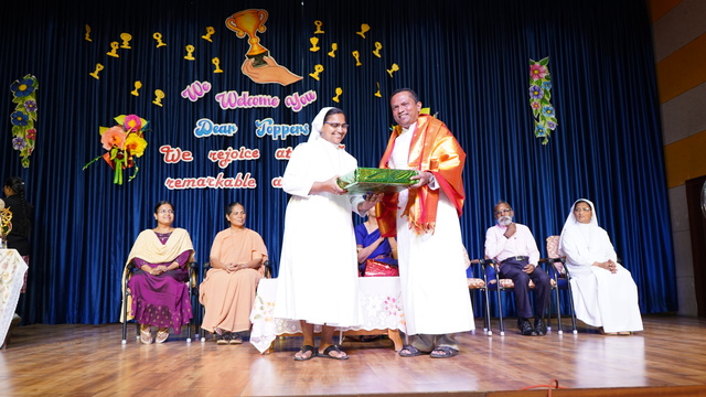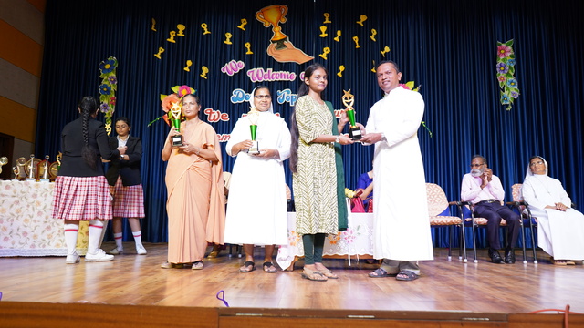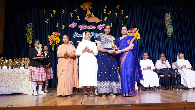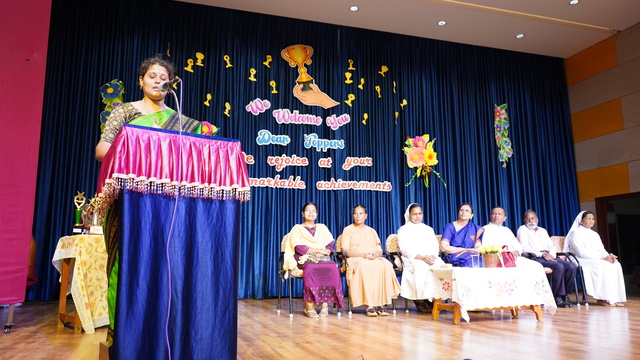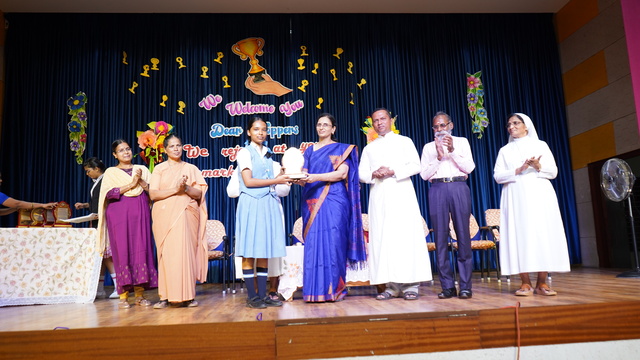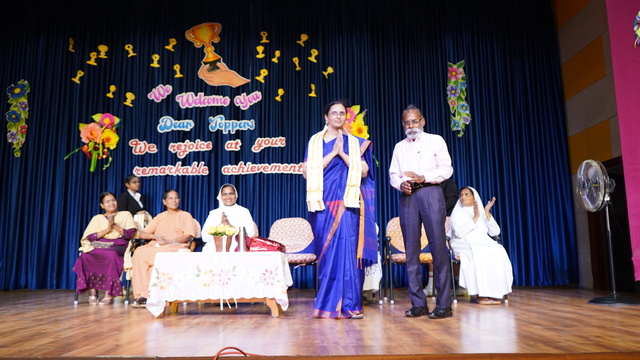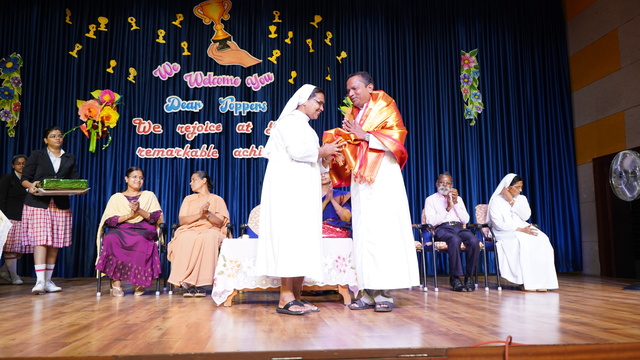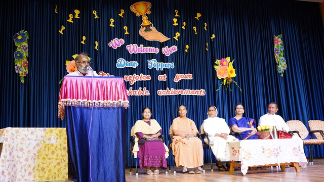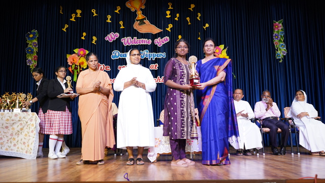 Toppers Day was celebrated on 13.06.2024 for the students of Std XII for their excellent performance in the Hr. Sec. Board Examination March’ 2024. Dr. Sridevi, M.B.B.S., M.D, was the Chief Guest. Our Correspondent Rev. Sr. Leema, Mr. Sekar Rotarian, PTA members, Parents of the toppers, were also present for the function. The Chief Guest Dr. Sridevi, Correspondent Rev. Sr. Leema, Principal Rev. Sr. Reena congratulated the students, distributed the awards and wished all the best to the toppers. Mr. Sekar, Sponsored Shield to the School toppers of Std XII and Std X for their marvellous achievement in the public exam.