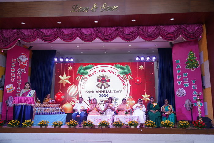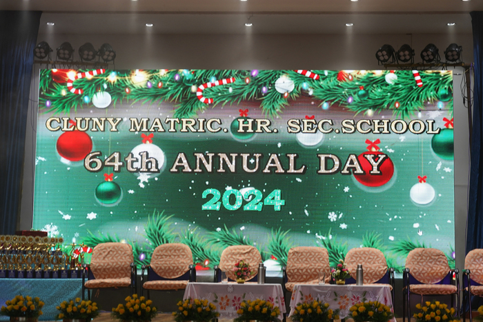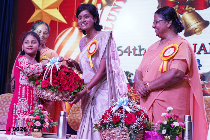 64th Annual Day was held on 07.12.2024 in the school Auditorium at 5.00 p.m. Mr. M. Kabeer, Chief Educational Officer, Salem was the Chief Guest. Guest of Honour Rev. Sr. Norah Alunkal, Provincial Superior, Cluny South Central Province and Special Guest Mrs. Jai Durga Prakash, Associate Director of Somosoorya Enterprises & Shri Bhavani Company graced the occasion. Mrs Hemalatha R our dear teacher, and her family were also present. Rev. Fathers, Brothers, Sisters, Principals and Staff from other educational institutions, parents, well-wishers and benefactors graced the occasion.