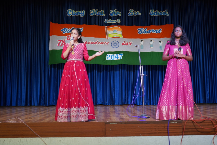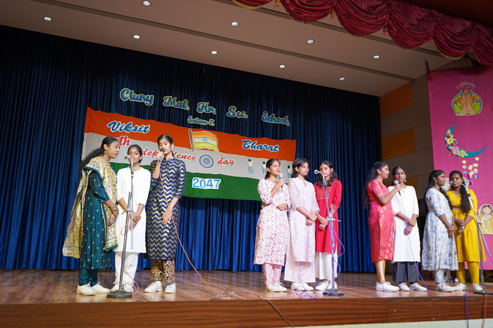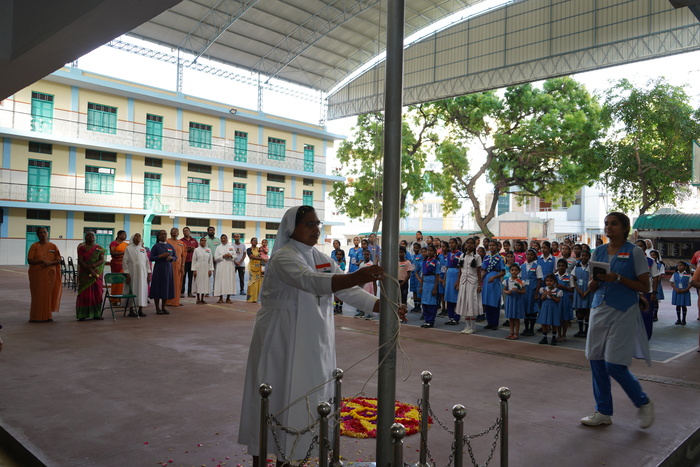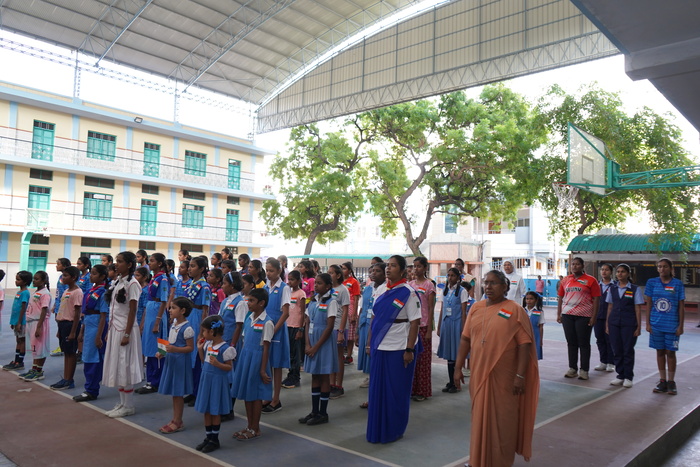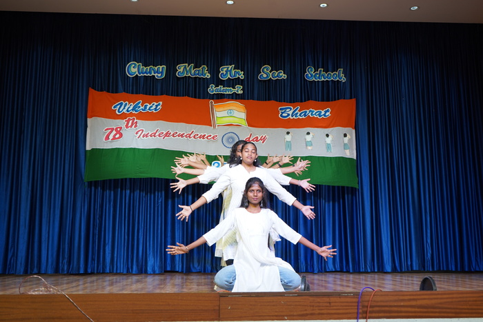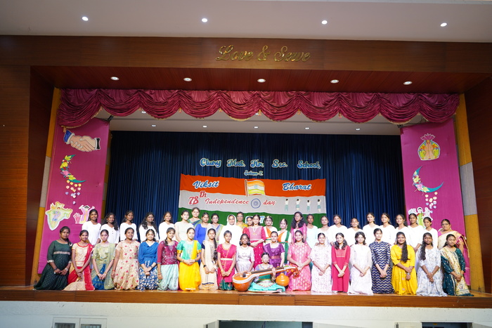 The 78th Independence day celebration was held on 14.08.2024 in the assembly hall with great enthusiasm and patriotism by the teachers and students of Std X to commemorate the country’s Independence from British colonial rule with the theme ‘VIKSIT BHARAT’. The celebration began with prayer service followed by the invocation dance. The students presented a cultural program, which included patriotic songs, speech and dance. Our principal Rev. Sr. Reena delivered a thought-provoking speech on the significance of Independence Day, highlighting the sacrifices made by our freedom fighters and the importance of preserving national unity. This celebration promoted national unity and pride among the students. On 15.08.2024, Independence day was celebrated with hoisting of the flag by our Principal Rev. Sr. Reena. Our Correspondent Rev. Sr. Leema, teachers, student guides, JRC, athletes and players of different sports were also present for the flag hoisting occasion. National Anthem was Sung and Sr. Reena addressed the gathering. Sweets were distributed to the children on this occasion.