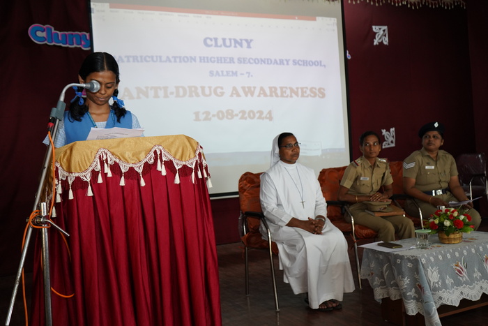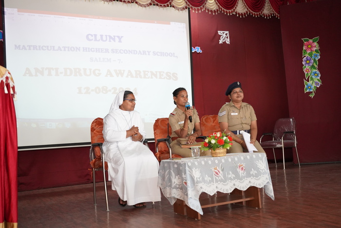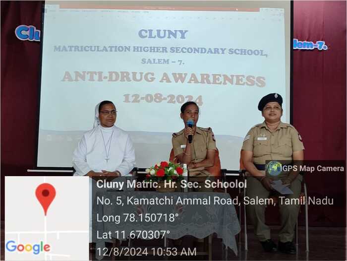 The Tamilnadu Government organized an Anti Drug Campaign on 12th August 2024. This campaign was held in accordance with the Chief Minister Mr. M. K. Stalin awareness programme against the usage of drugs among school & College students. The Chief Guest invited to this programme was Mrs. Arulmozhi, the Sub Inspector of Police, Hasthampatti Police Station. Mam displayed a live programme depicting the avoidance of the usage of drugs. A Pledge was taken by the students, not to fall a prey to the usage of drugs and not to allow others from taking them.