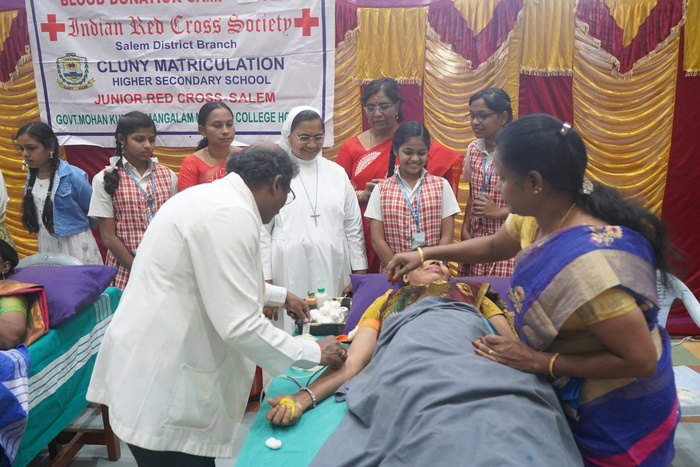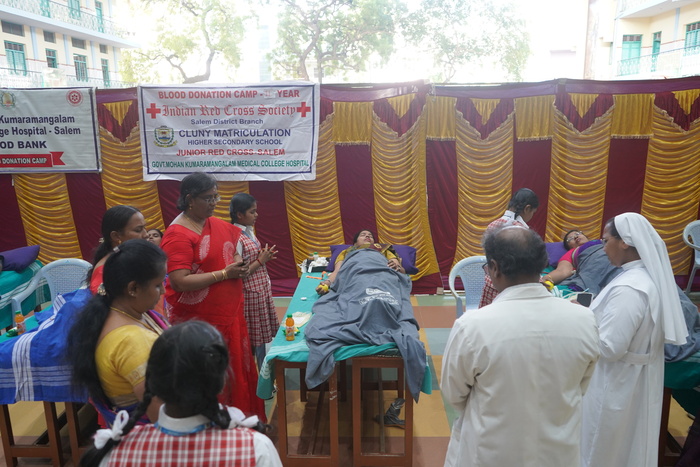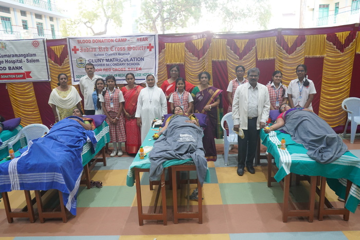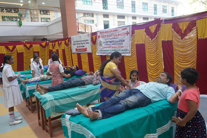 On 4th January 2025, Blood Donation camp by JRC club and Hair Donation Camp by Interact club was organized along with the PTA meeting. Many teachers, parents and students contributed generously towards this good cause. The blood donated was handed over to Mohan Kumaramangalam Hospital & College, Salem. The hair that was collected was to be used for making wigs for cancer patients and was handed over to Rotary Club of Salem Midtown.