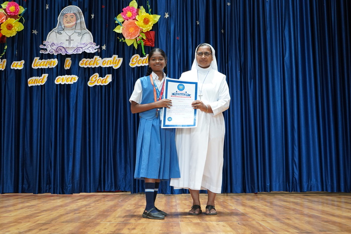Siva Sakthi Academy and Global Records and research foundation organized a World record event on the topic Dual Art Forms Carnatic Vocal and Bharathanatyam at Thiruchendur on June 1st 2024. Sahana R of class IX F along with 1000 Classical artists performed the dual art and created a new world record. She received a certificate and a medal and the same is registered in the books of Records India Academy and in Asia Pacific Records.