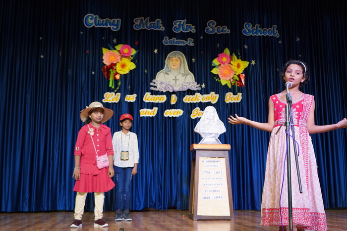 “Let us Learn to seek only God and ever God” was the final day (15.07.2024) theme by the students of Primary. The programme started off with the lighting of the lamp, Prayer service, a hymn praising the life of Blessed Anne Marie Javouhey. We also had an Invocation dance, a speech on the life history of our Blessed Mother. The little one’s of the KG presented a beautiful dance. A skit depicting the life of our Mother was enacted. The Statue similar to the one in the South Africa(Manna) was also displayed during the skit. It was a marvelous programme where children were enlightened about Mother Foundress. Proficiency prizes for the academic year 2024-2025 was distributed.