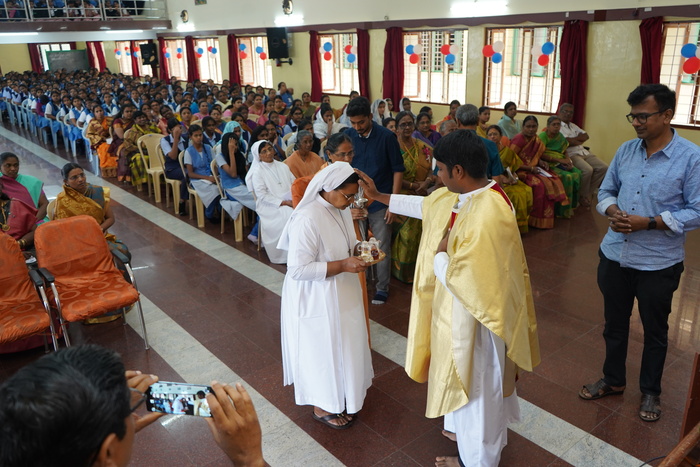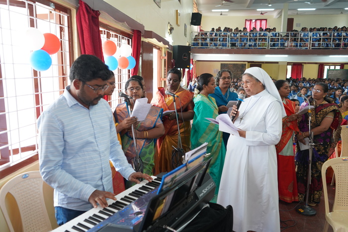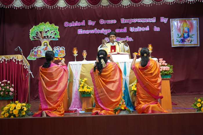 On 9th January the retirement function for Mrs. Hemalatha R was held in a grand manner. PTA Members, Lions Mr. Sekar were also present for the function. As a token of gratitude Mrs. Hema was honoured with a Ponnadai, Bouquet, Memento and a gift by the management, Staff, Students and Akkas. We had Invocation dance, Fusion dance, singing and throwback memories. This was followed by Holy Eucharist by Rev. Fr. Peter, Bishop’s Secretary. Father spoke on “Emotional Wellbeing”, and a special Intentional Mass was offered for the students of Std X, XI and XII who are going to appear for the public exam.
