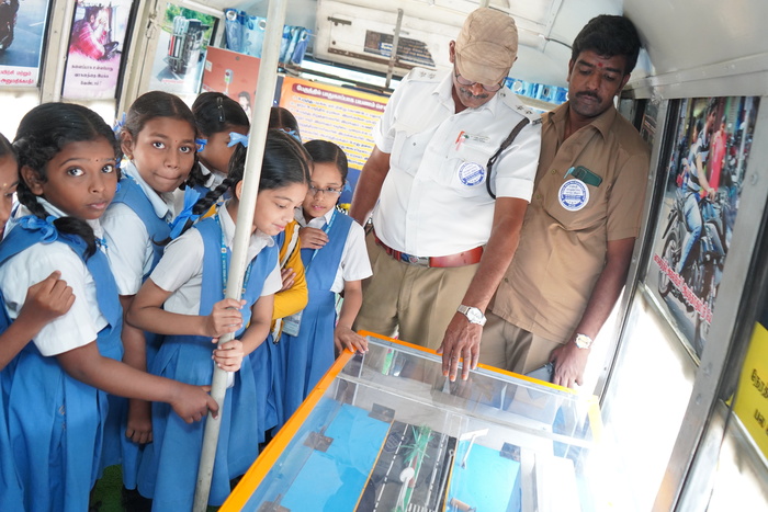 36th Road Safety Awareness Programme was organized in our school on 30.01.2025 by TNSTC Staff Mr. Prakash and Mr. Rajagounder. It was an audio and video presentation in TNSTC vehicle. The vehicle emphasized the importance of wearing seat belts and the advantages of using helmets for personal safety. Additionally, students were educated on the do’s and don’ts of hill travel, particularly while navigating turns, and were made aware of traffic signals and their significance in ensuring road discipline. This initiative effectively reinforced the need for responsible road behaviour and safety precautions. Students of std V to Std IX participated in this awareness campaign. As a result, the message reached students successfully, reinforcing essential safety practices in a meaningful way.