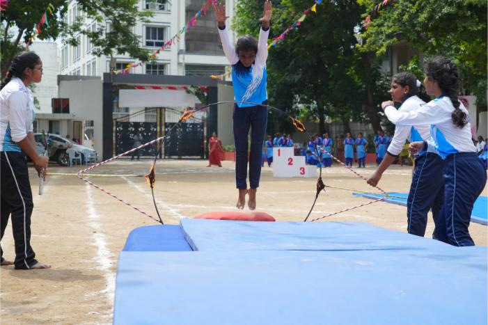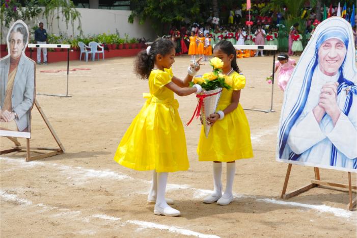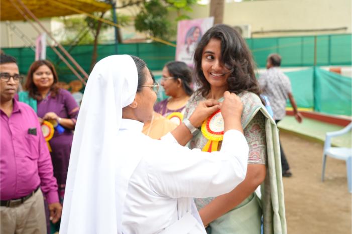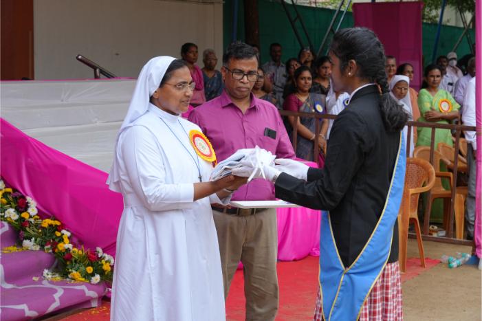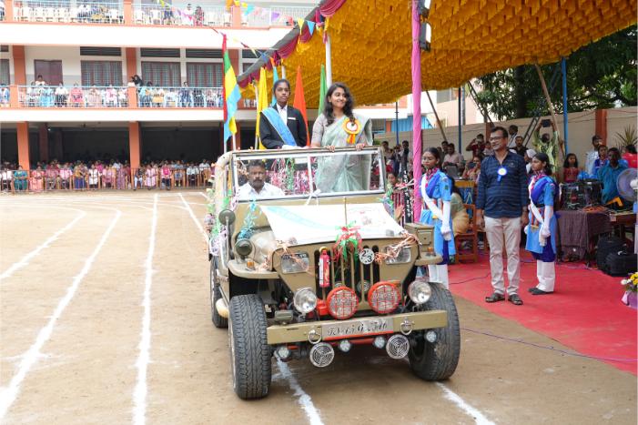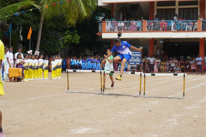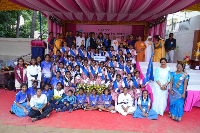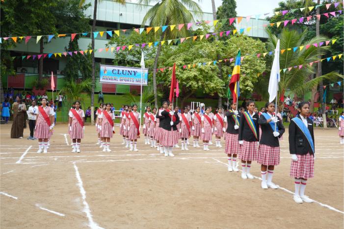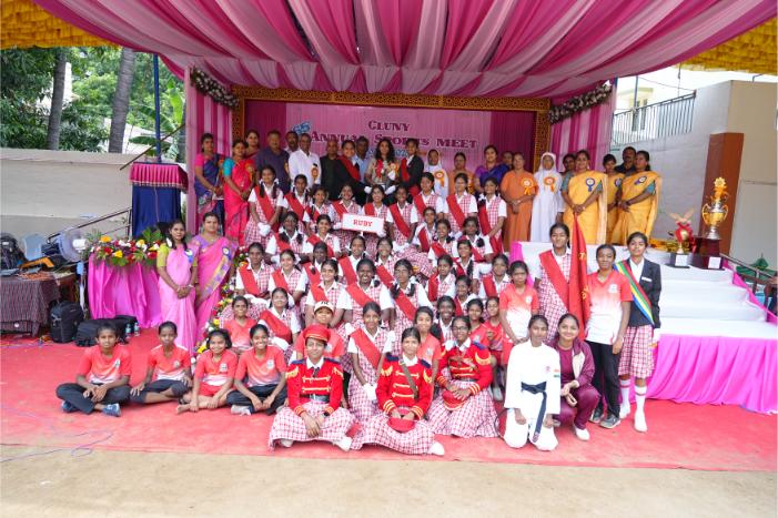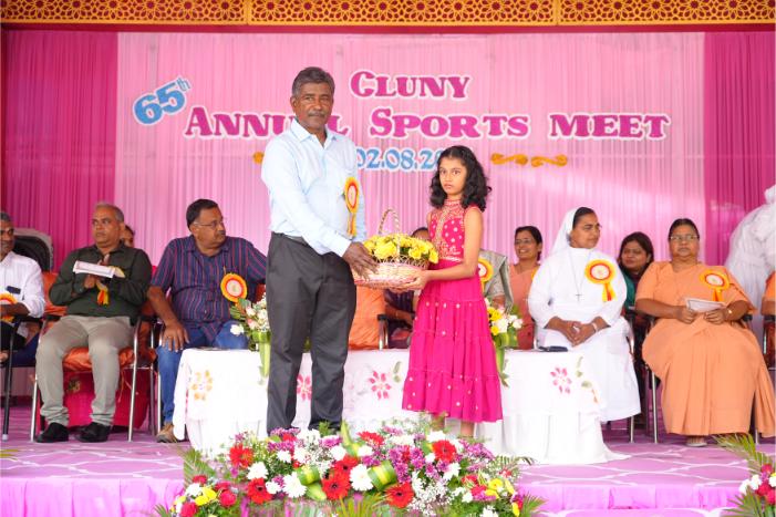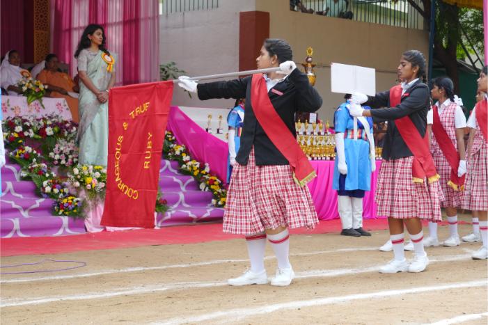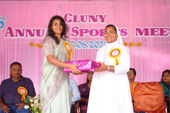 The much-awaited 65th Annual Sports Day 2025 was celebrated with great enthusiasm, energy, and team spirit on 02.08.2025. The Chief Guest of the day was Ms. Swaathi Ratna S, IPOS, Senior Superintendent of Post offices, Department of Posts, Ministry of Communications, Govt of India. The Guest of Honour was Mr. Rajaram N, M. A., NIS., Asst. Director(Rtd), Sports Authority of India, Principals, Sisters, Brothers & Staffs of various institutions, PTA & COSA members were present on this occasion. From the energetic opening march-past and oath-taking ceremony to the thrilling track and field events, the day was packed with excitement. Participants gave their best in every event, showcasing determination, discipline, and teamwork.