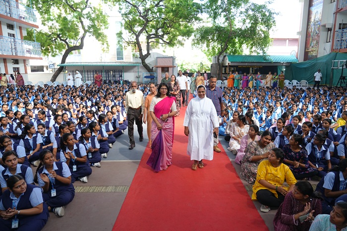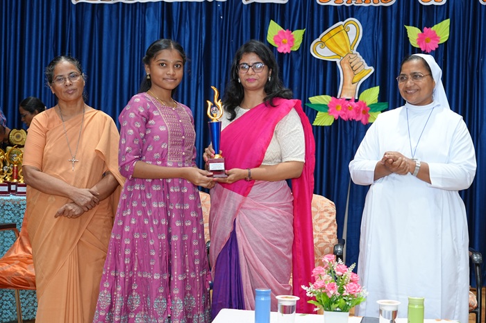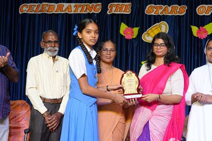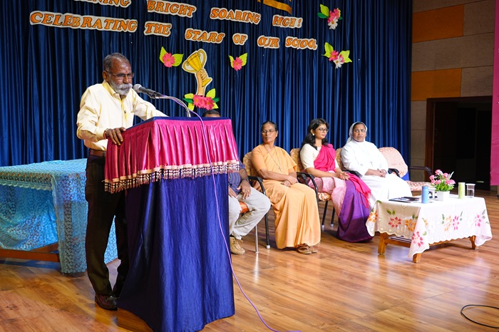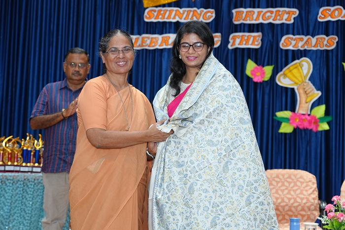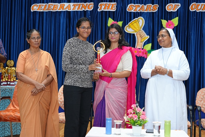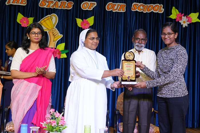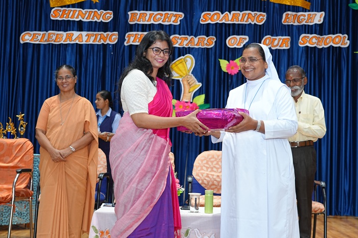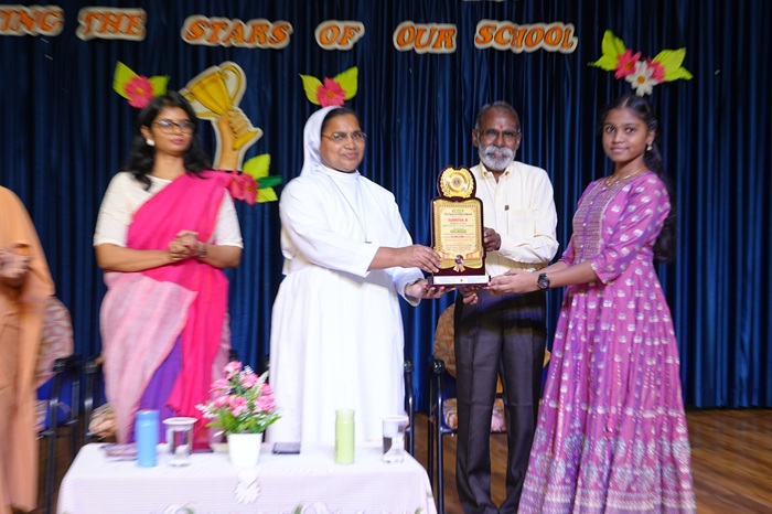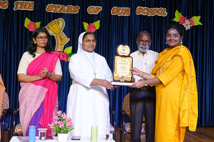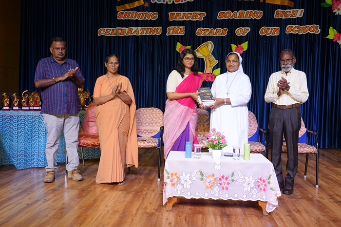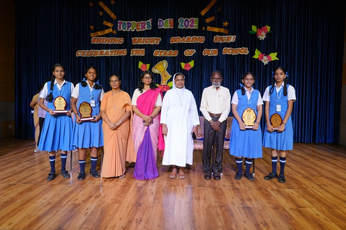 On 13.06.2025 Toppers’ Day Prize Distribution Ceremony for Standard XII was held with great enthusiasm and pride to honor the outstanding academic achievements of our students . Our former student CA Ashvitha R, Chartered Accountant at Warner Brothers Discovery, Hyderabad was the Chief Guest. Our Correspondent Rev. Sr. Leema, Our Principal Rev. Sr. Reena, Mr. Sekar Rotarian, PTA members, Parents of the toppers, were also present for the function. The programme commenced with a solemn prayer service, invoking blessings for the continued success of the students and the school. This was followed by an inspiring address by the Chief Guest, who emphasized the importance of perseverance, discipline, hardwork and lifelong learning.
