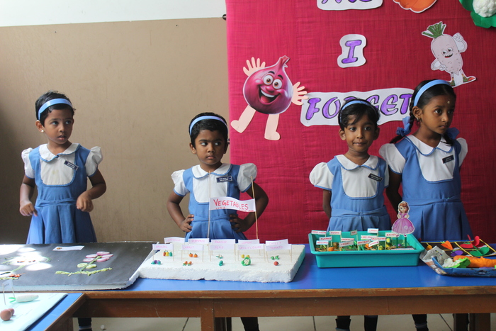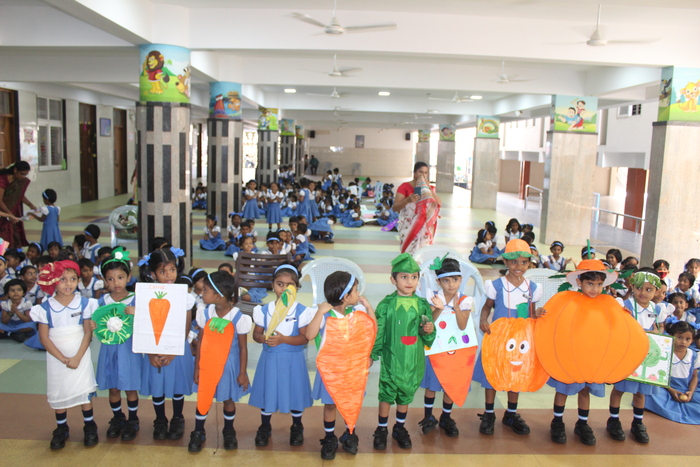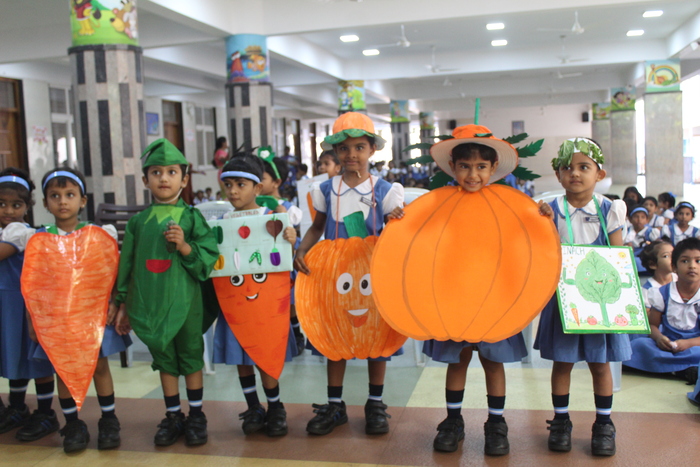 Our little ones came dressed as carrots, tomatoes, brinjals, Potatoes, and many other vibrant vegetables. Their creativity and enthusiasm brought a cheerful energy to the campus. Each child spoke a few lines about their favorite vegetable—sharing fun facts, health benefits. It was heartwarming to see their confidence and growing communication skills.
