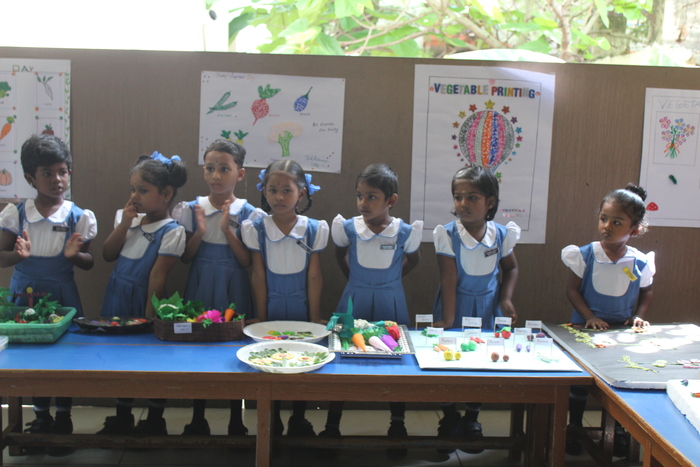 Vegetable Day was celebrated with great enthusiasm and excitement by our UKG students on 24.06.2025. The event aimed to promote healthy eating habits and help children recognize and appreciate the value of vegetables in a fun and engaging way.