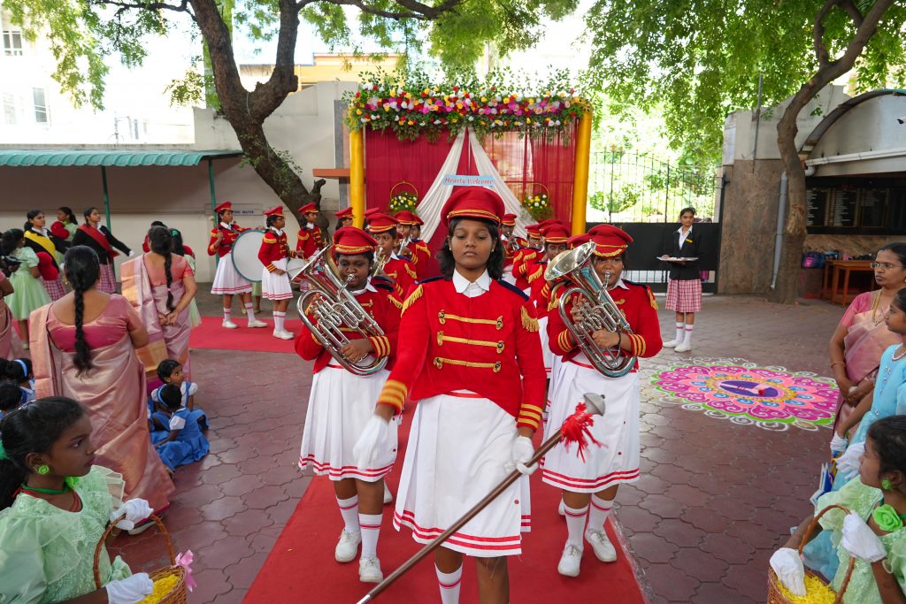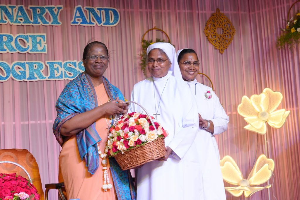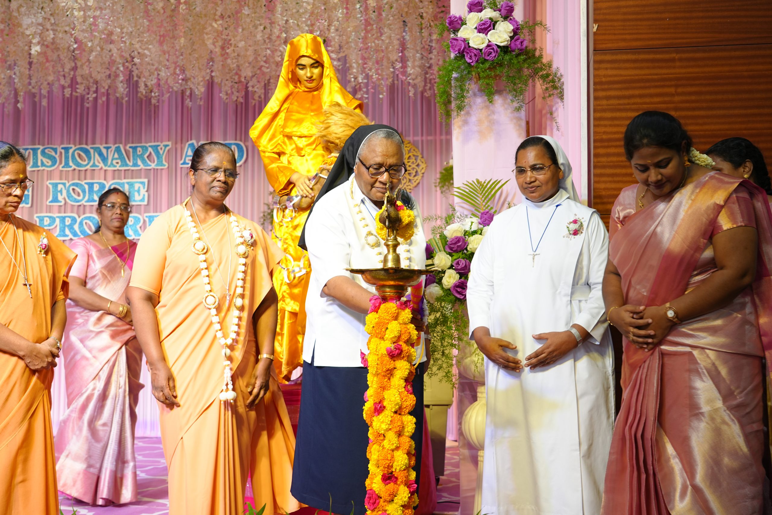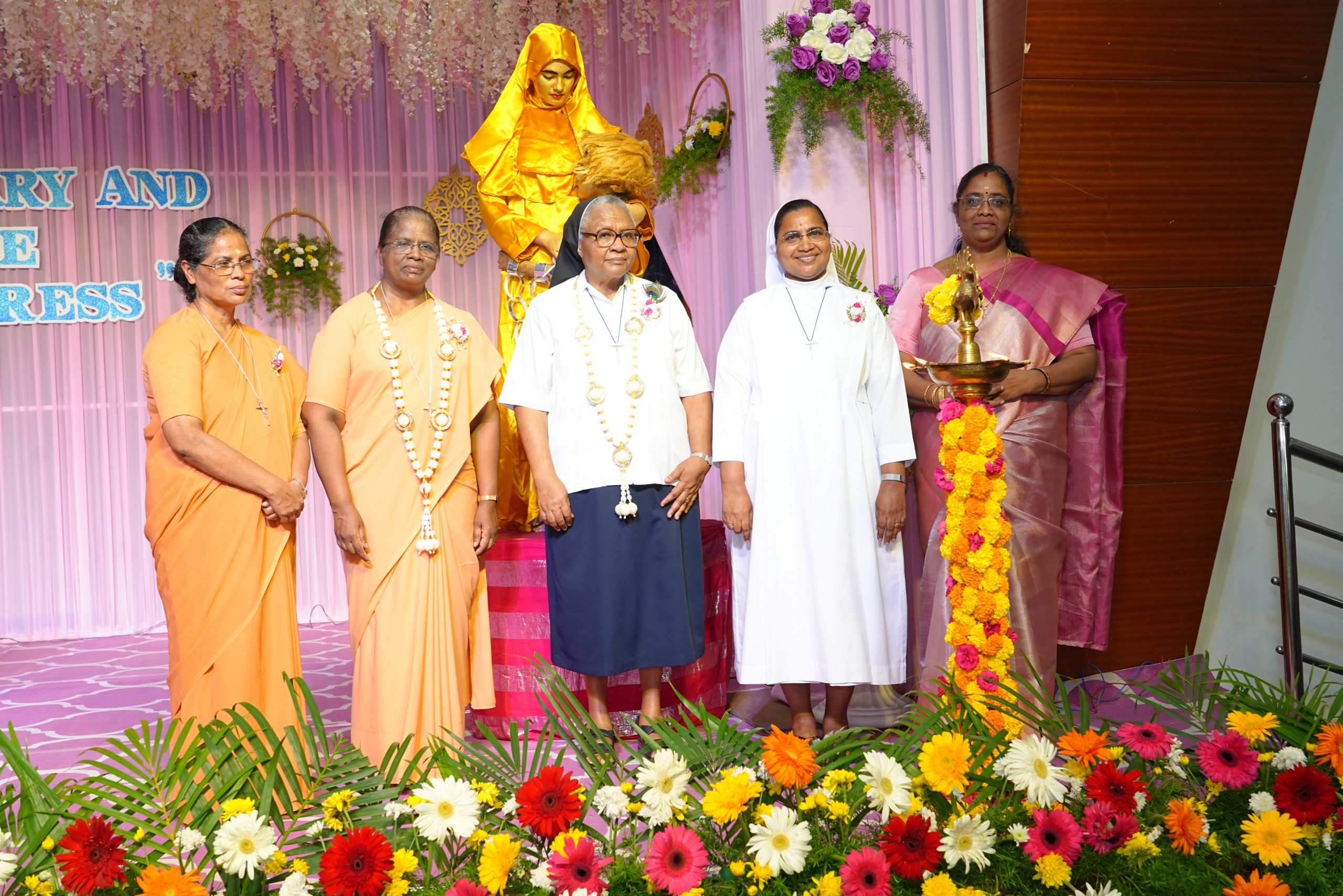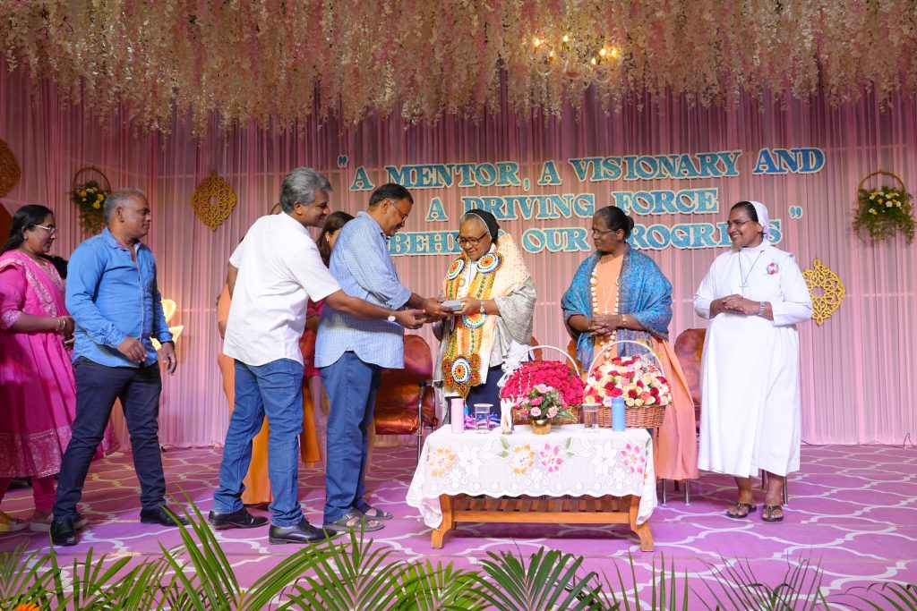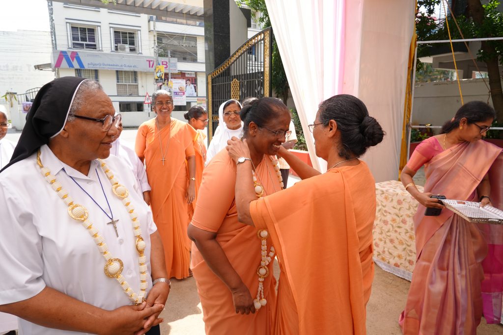 Mother General was ceremoniously escorted in a jeep from the back gate with a band procession. At the main entrance, she was given a traditional welcome with Kumba Arathi, Chandan, and Kumkum.